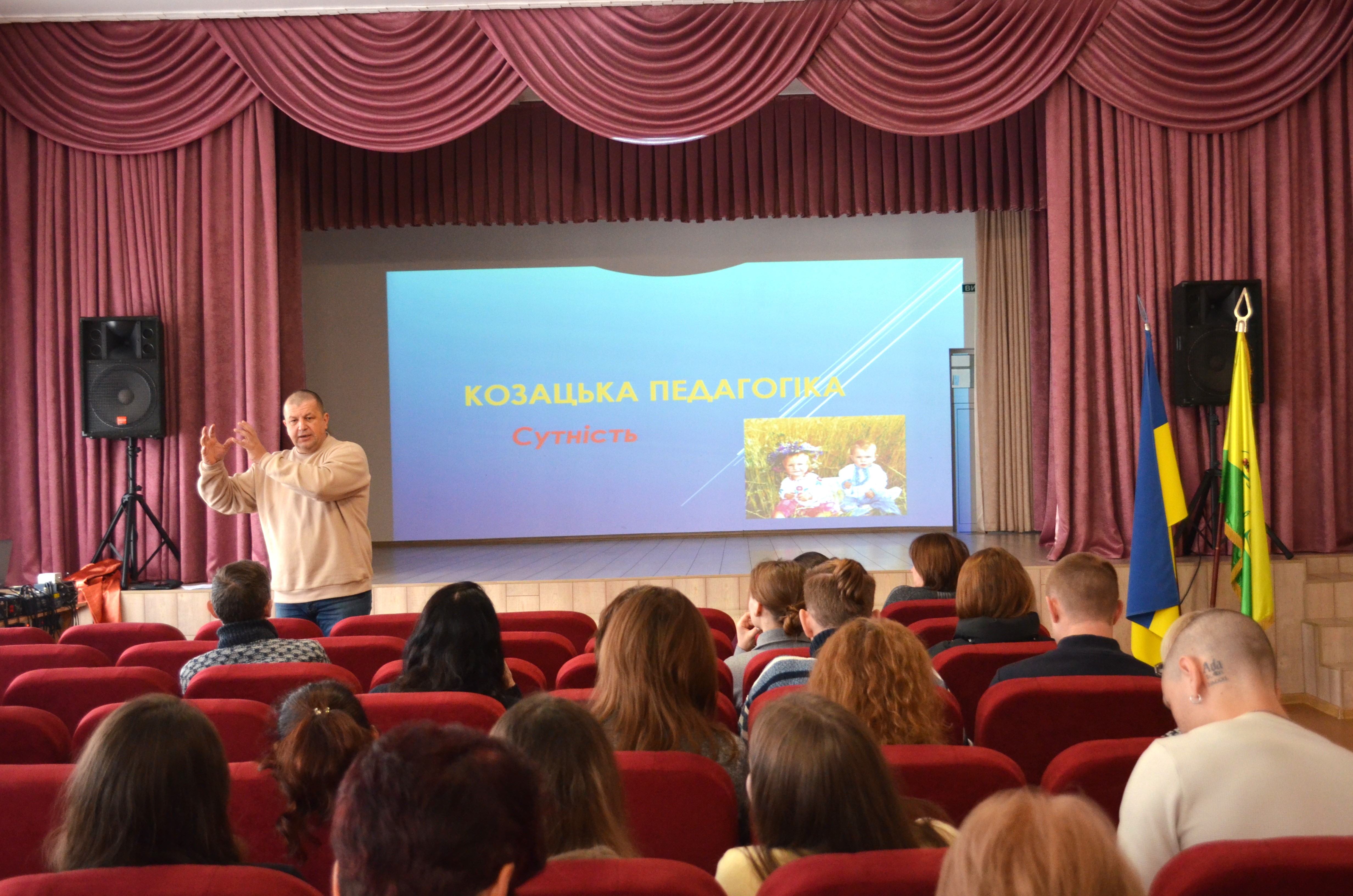 Лектор зазначив, що українців у всьому світі знають як прекрасних педагогів та філософів. Тому, працюючи з дітьми, розвиваючи високі лицарські якості, виховуючи в підростаючого покоління почуття власної гідності, пошану до звичаїв і традицій, історії, духовності українського народу, ми приречені на успіх.