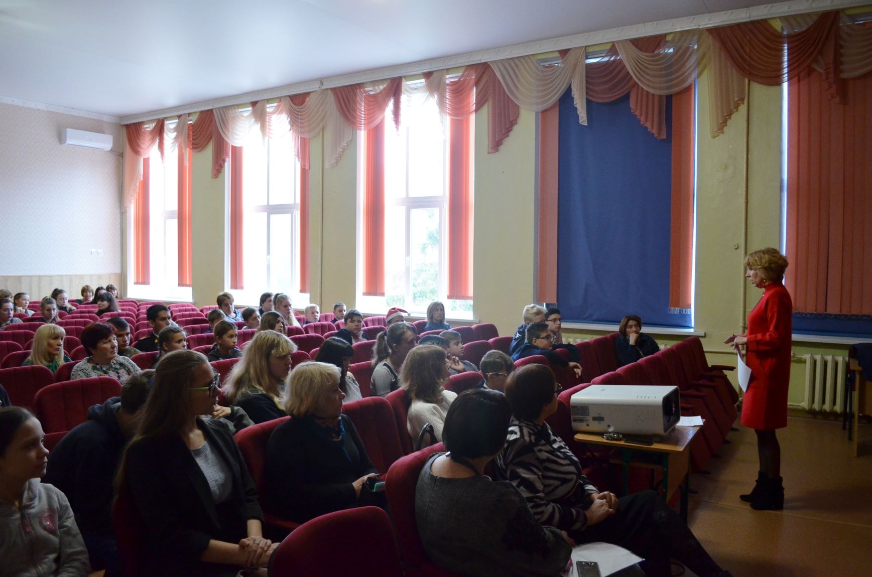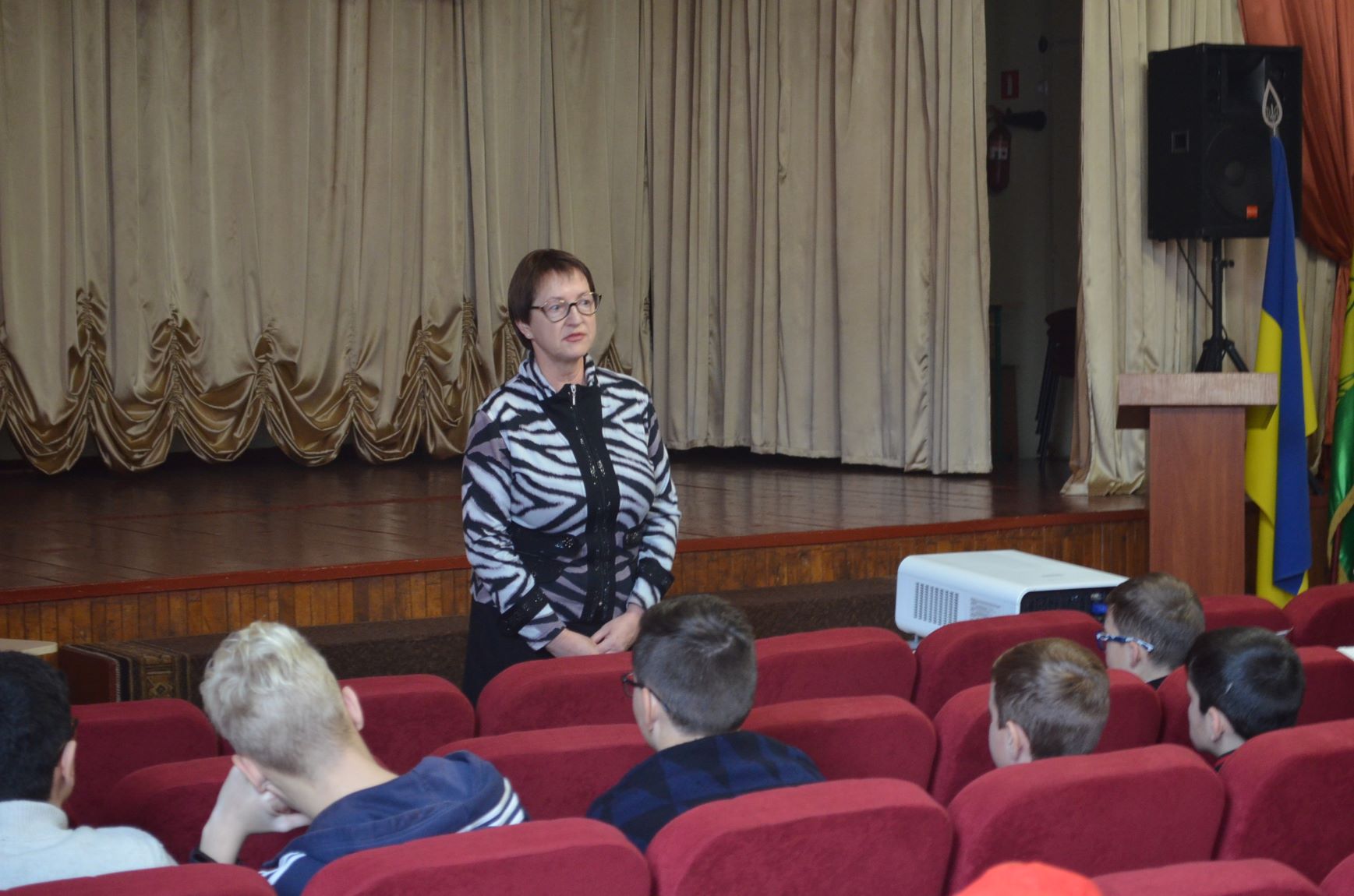 53 юних математиків разом зі своїми педагогами перед початком інтелектуальних змагань зібралися в актовій залі.