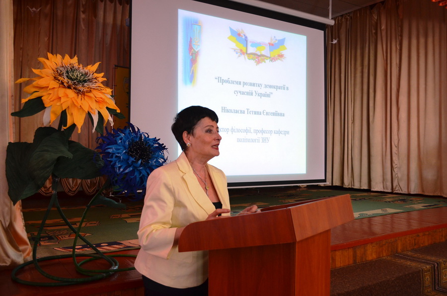 Із доповіддю «Втілення національно-патріотичного виховання засобами козацької педагогіки на прикладі самоврядування здобувачів освіти та через «Спас» виступила перед гостями учениця 9-А класу Чубукова Вероніка.