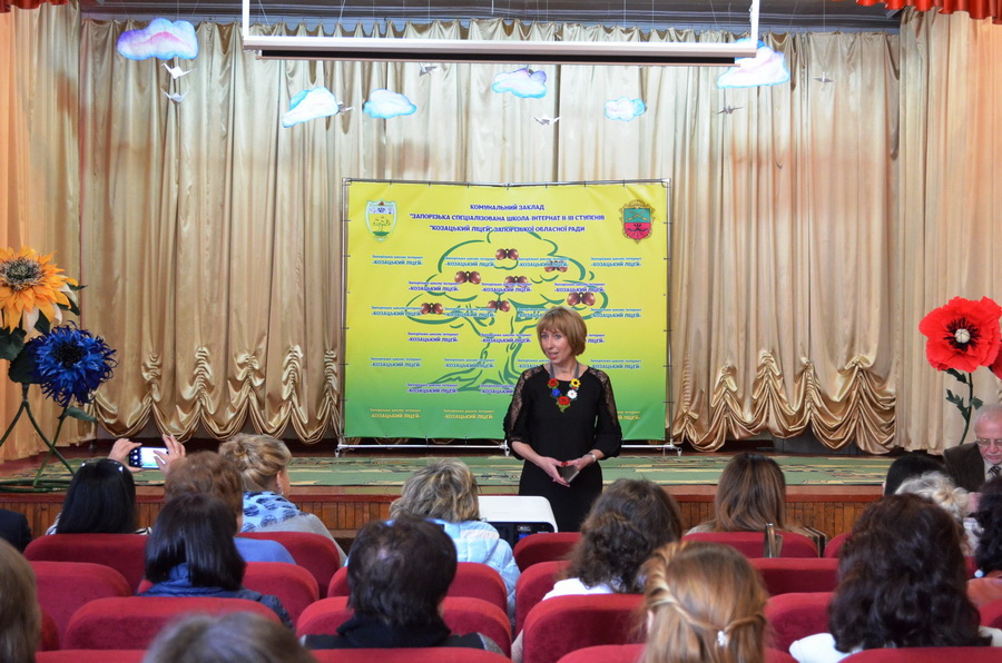 Після активної участі та творчої взаємодії під час роботи, досягнувши поставленої мети заняття, освітяни зібралися в конференц-залі «Козацького ліцею». Директор ліцею Губіна Оксана Олександрівна презентувала освітній заклад.