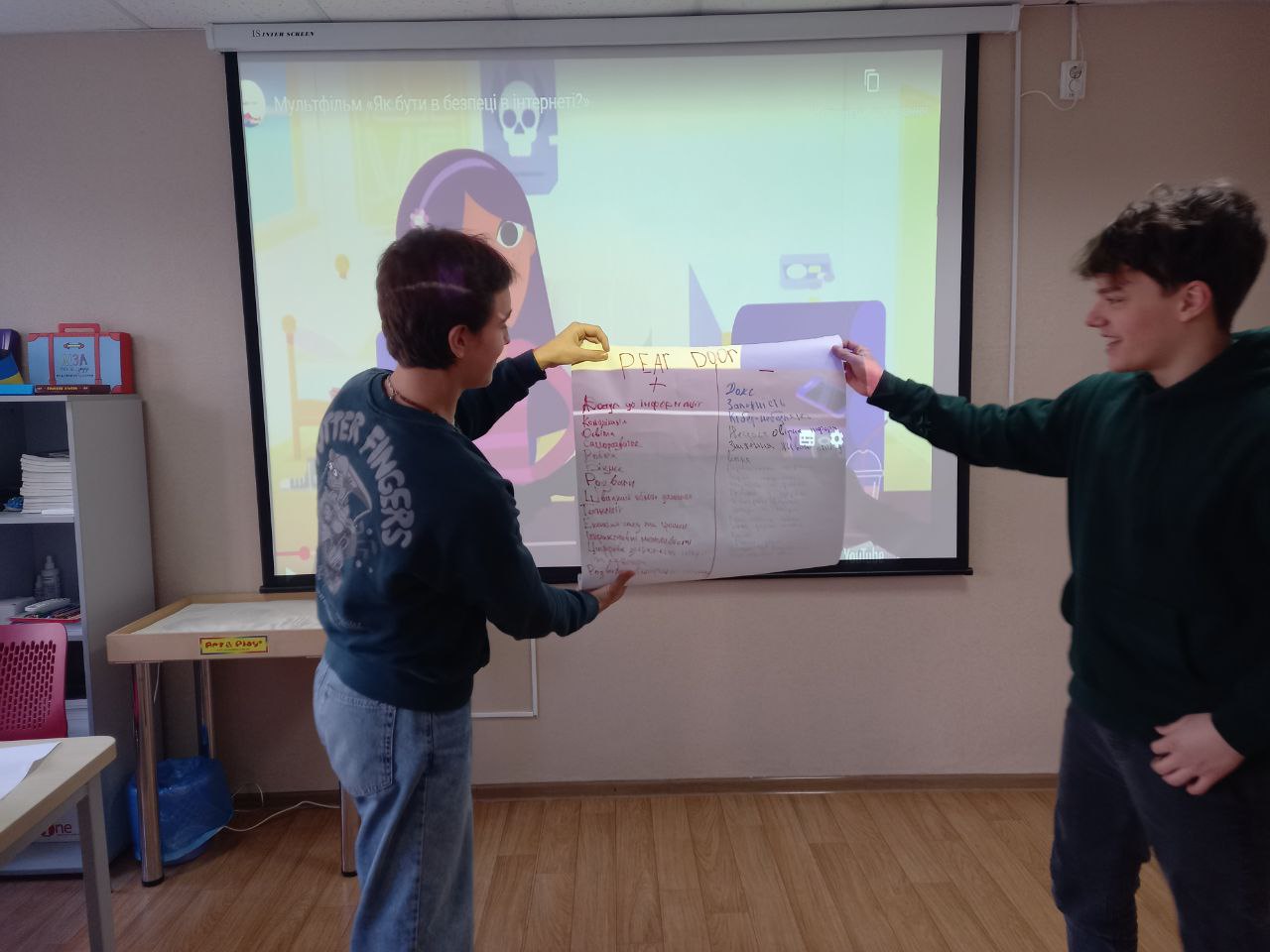 У процесі заняття ліцеїсти дізнавалися про небезпеки, які існують в інтернеті та соціальних мережах, пройшли тестування щодо безпечного користувача, розробляли шляхи подолання інтернет-небезпек.