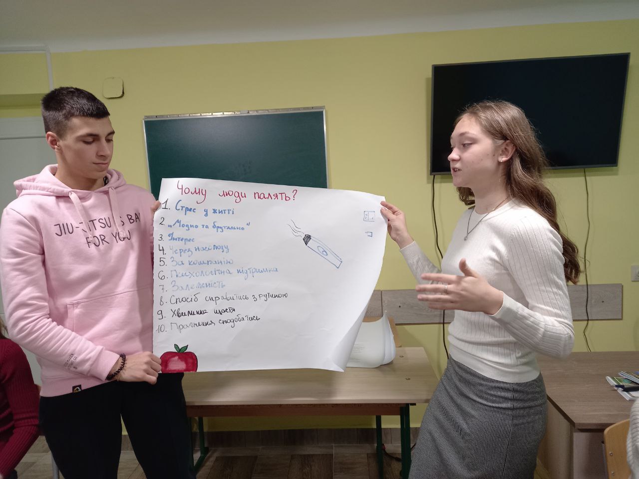 Метою тренінгу стало підвищення обізнаності учнів щодо шкідливості куріння тютюнових виробів, е-сигарет і систем для нагрівання тютюну.