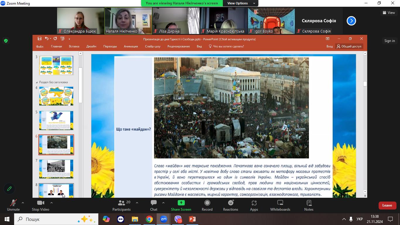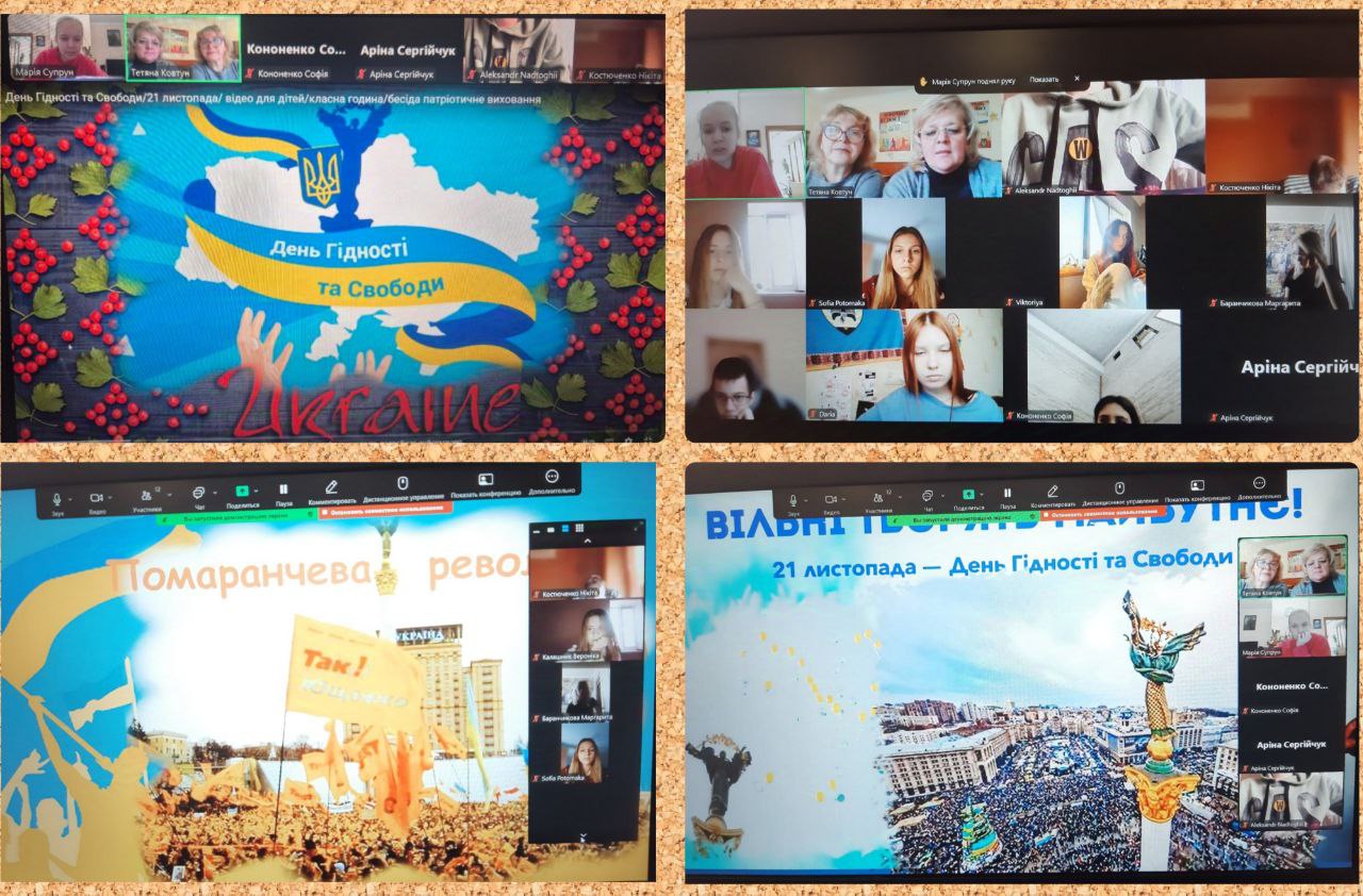 Вчителі та вихователі провели патріотично-виховні заходи онлайн та офлайн на честь двох революцій: Помаранчевої революції 2004 року (20-та річниця) та Революції Гідності 2013 року (11-та річниця).