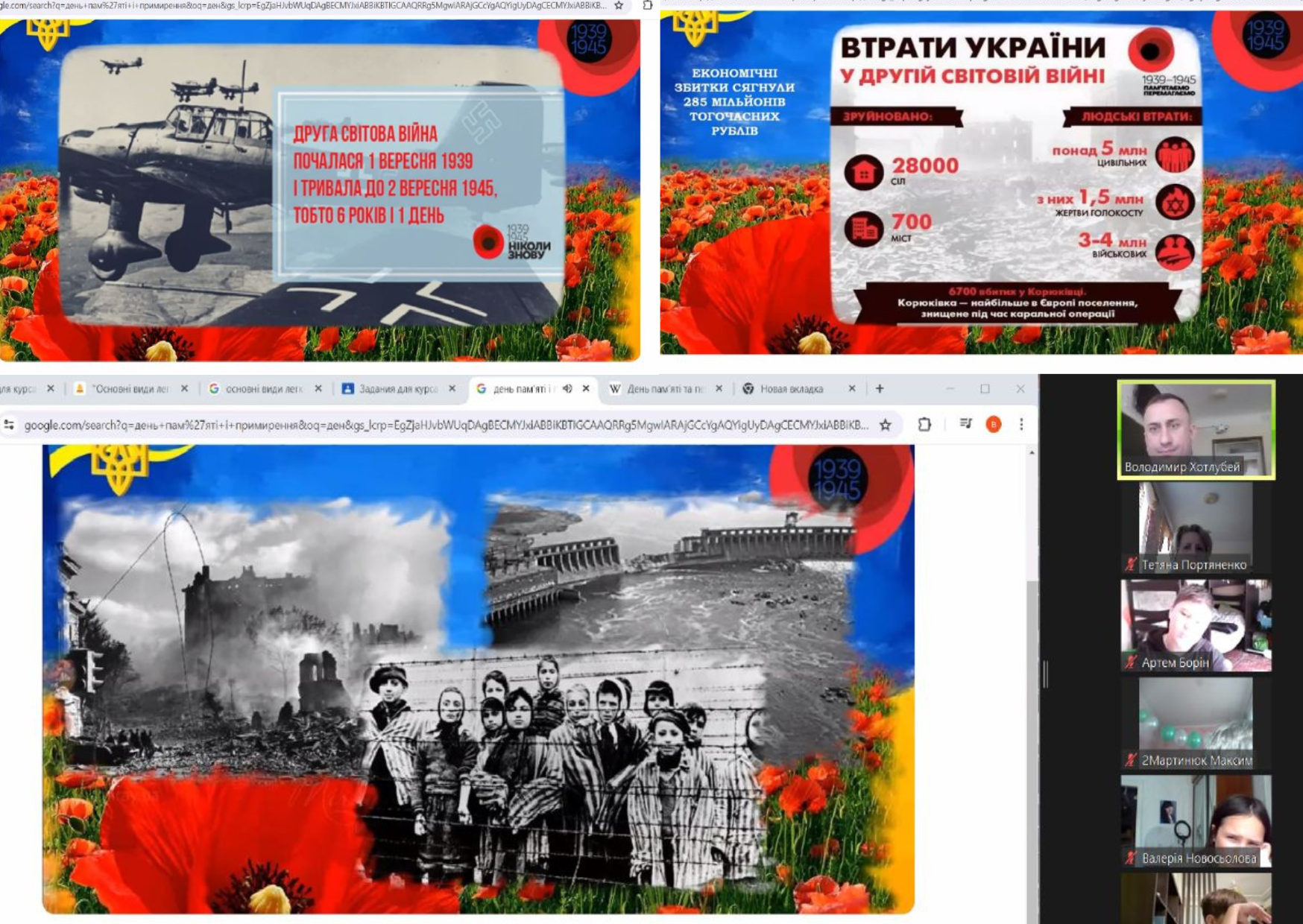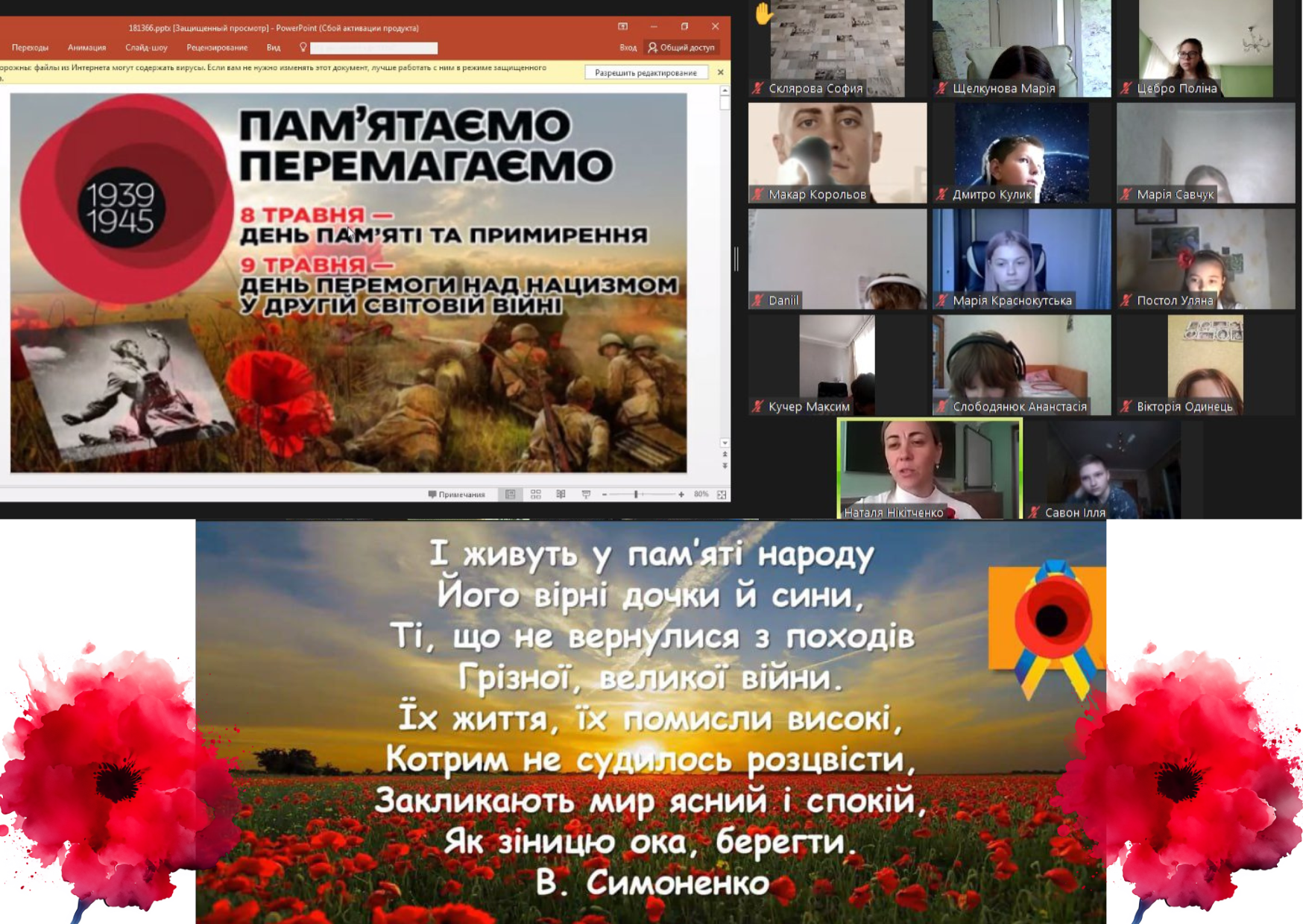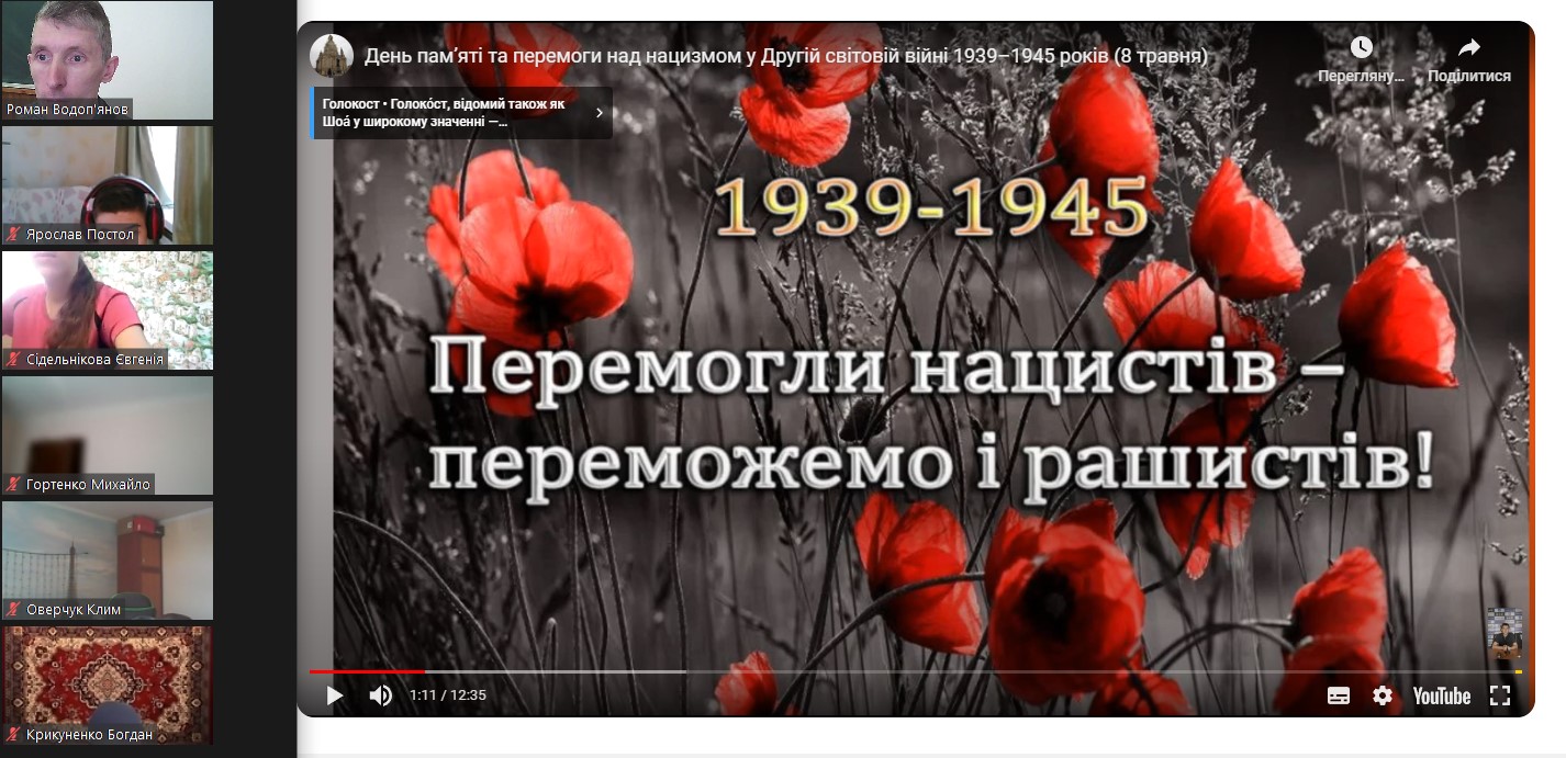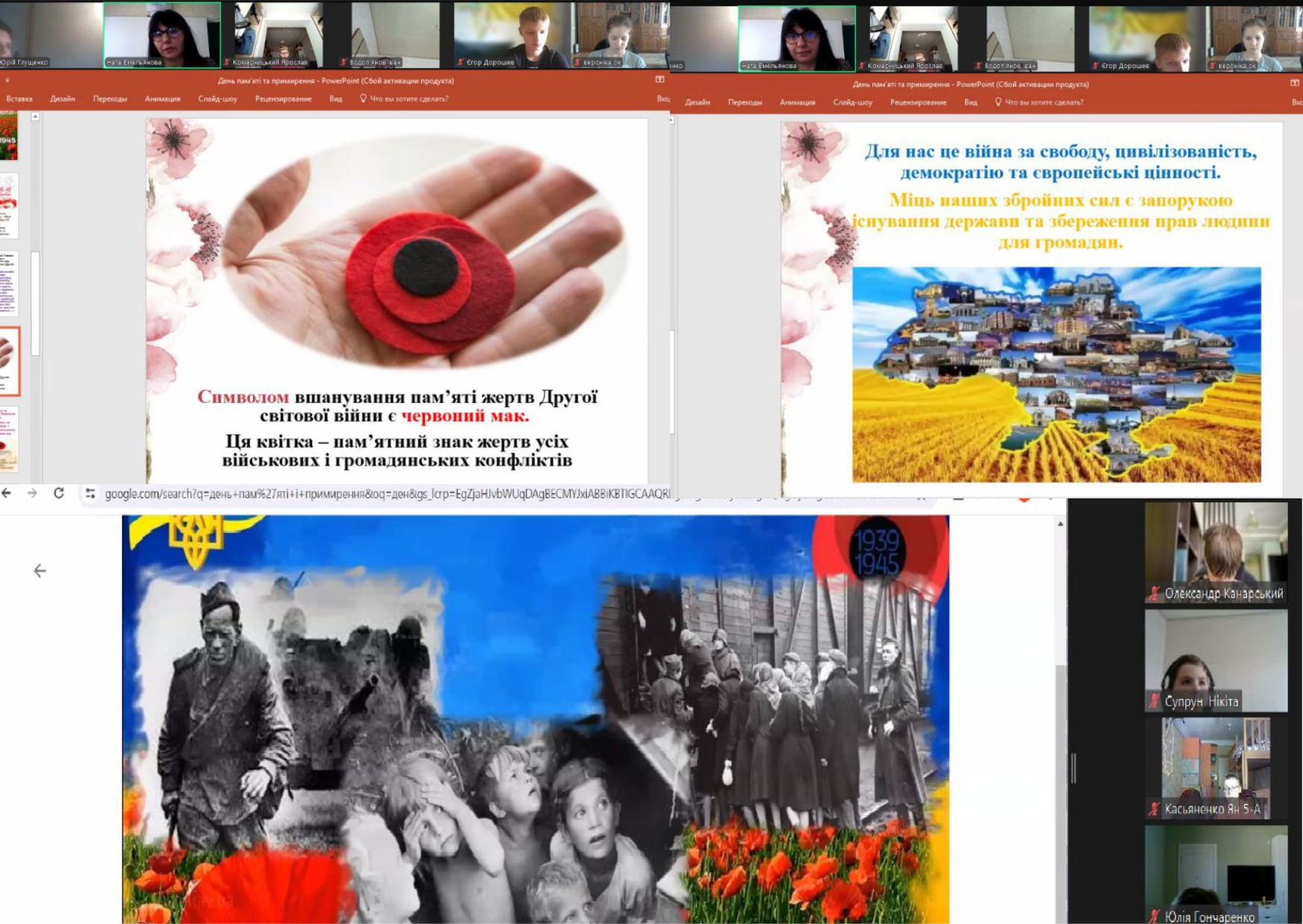 У Запорізькій школі-інтернаті «Козацький ліцей» вшанували 79 річницю закінчення війни як символ перемоги цивілізованого світу над злом нацизму, звільнення людства від загрози глобальної катастрофи під час тематичних виховних заходів «Пам'ять єднає нас», «Пам'ять та Перемога: Уроки історії», «Перемога над нацизмом, або важливість миру та толерантності», «Вшанування героїв Другої світової війни» та ін.