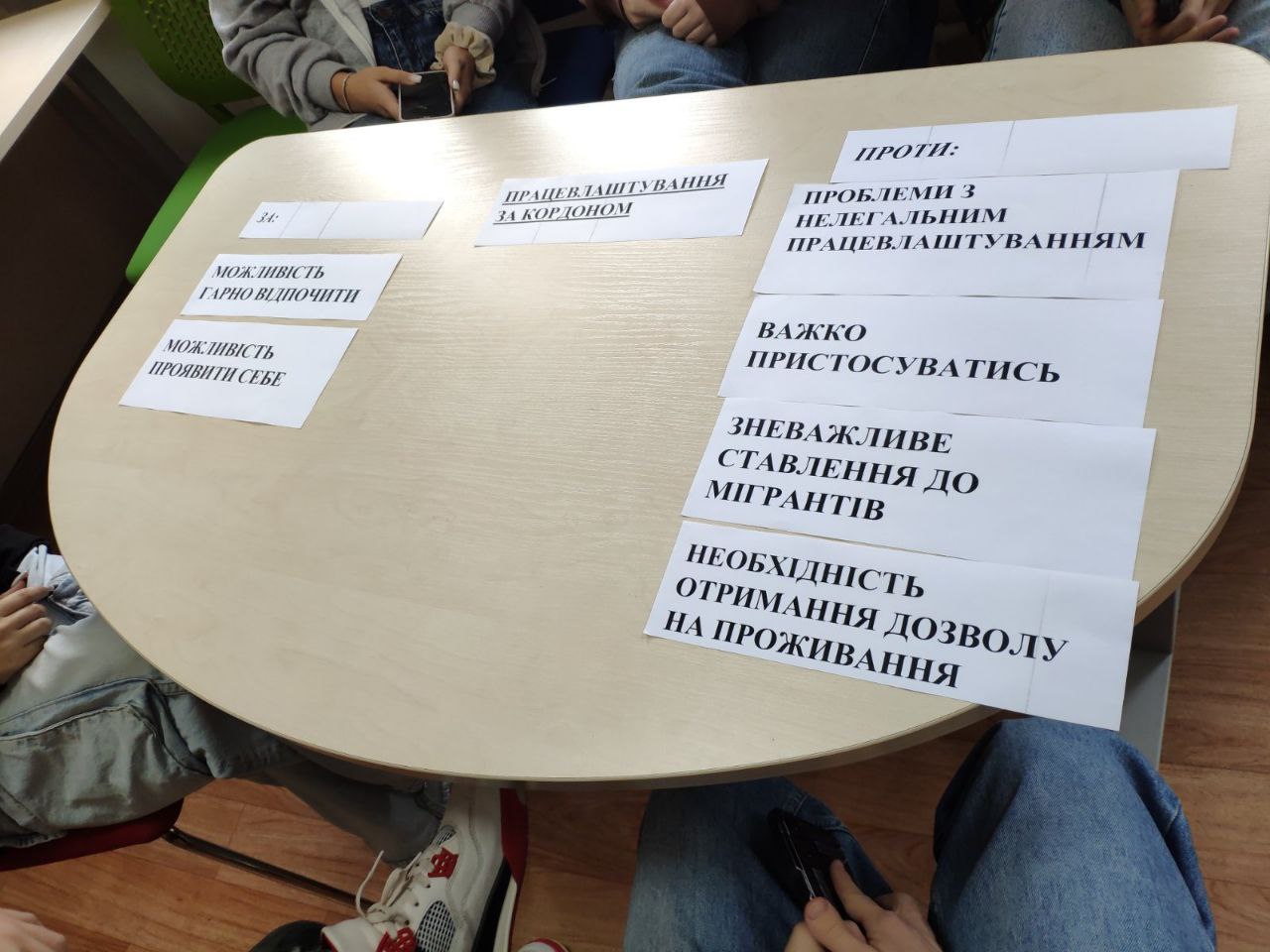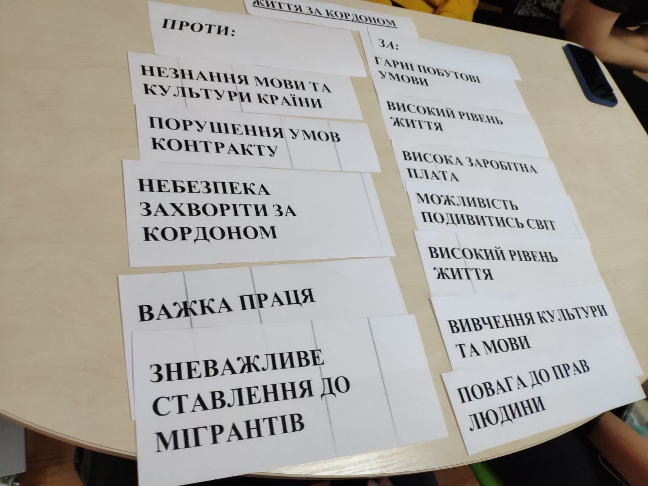 Під час заходу здобувачі освіти переглянули й обговорили відеоролики, ознайомилися з інформаційними матеріалами, проаналізували переваги та недоліки життя і працевлаштування за кордоном.
