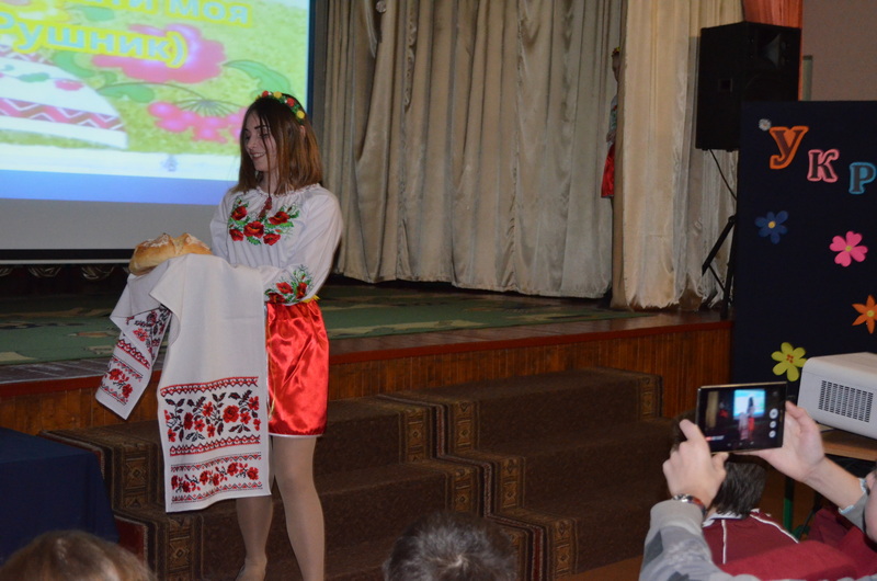 Бакаляр Вікторія розказала про один із дуже важливих народних символів України – рушник. Також дівчина нагадала, що саме вишитий рушник завжди був символом гостинності українців: зустрічаючи гостей, господарі підносили для них хліб із сіллю саме на рушнику.