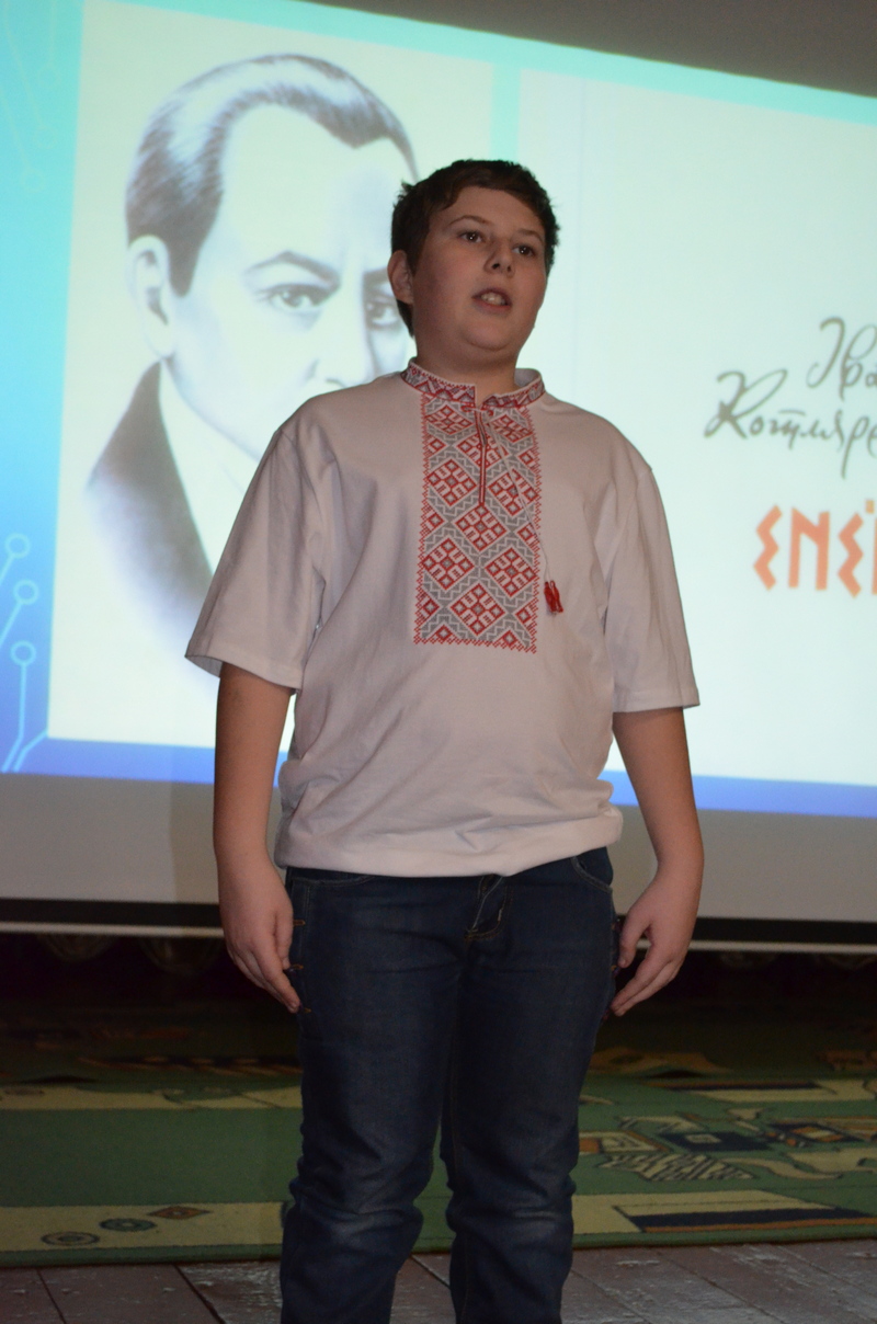 Потім відправились на Полтавщину. Бездоганно декламував уривок «Еней був парубок моторний» із «Енеїди» Івана Котляревського - першого художнього твору, написаного «живою» українською мовою, Мейко Данило.