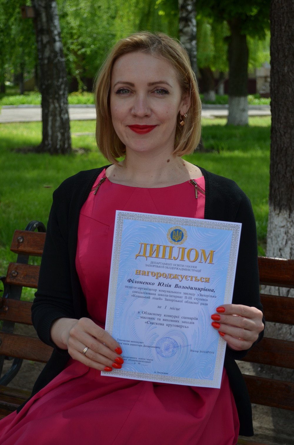 Учасницею «Святкової круговерті» стала педагог-організаторка Запорізької школи-інтернату «Козацький ліцей» Філоненко Юлія Володимирівна, яка за свою авторську розробку сценарію свята у номінації «Педагоги, керівники гуртків» посіла І місце та була нагороджена Дипломом Департаменту освіти і науки Запорізької обласної державної адміністрації.
