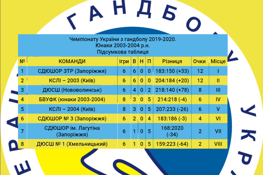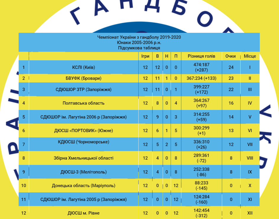 Чемпіонат України «Дитяча ліга» з гандболу сезону 2019-2020 завершений достроково через пандемію коронавірусу.