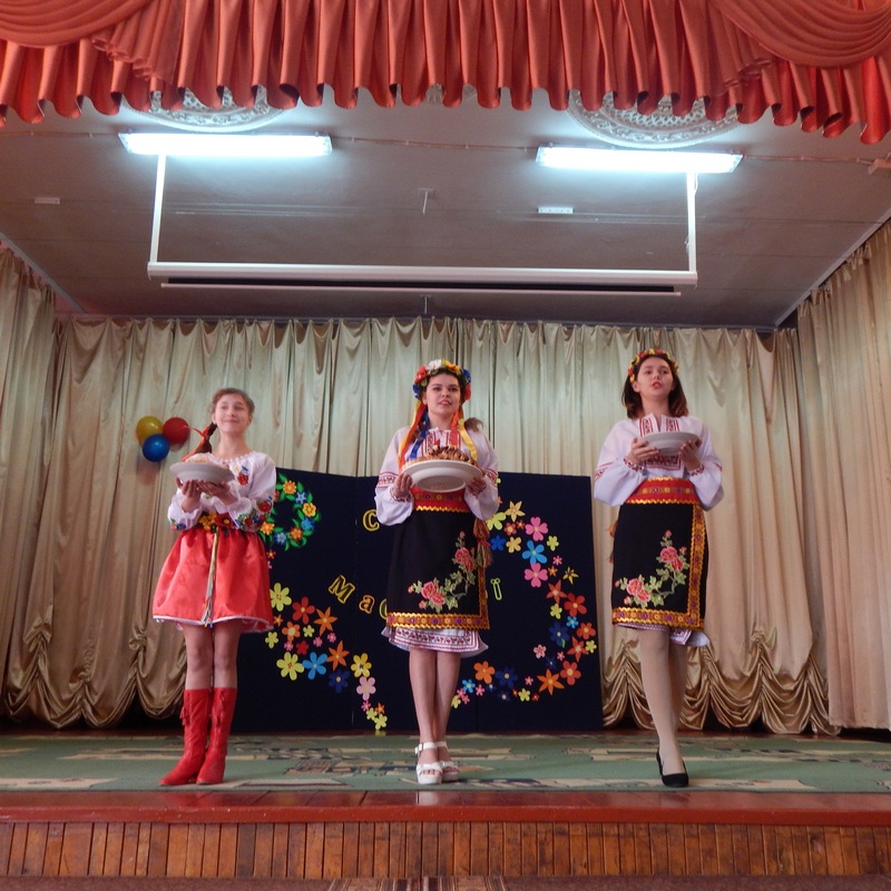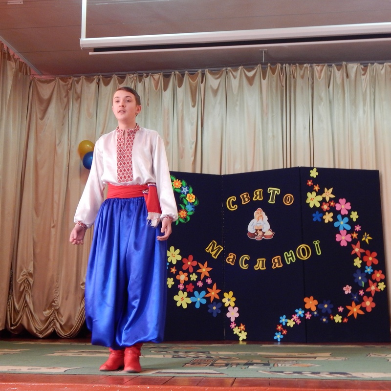 Зустрічали Масляну, в образ якої майстерно перевтілилась учениця 9-Б класу Мотовілова Діана. Юні актори та актриси закликали весну, відгадували загадки-жарти, сміялись, сварились і, врешті-решт, попросивши вибачення один в одного, помирилися та заспівали разом пісню про кохання «Палала».