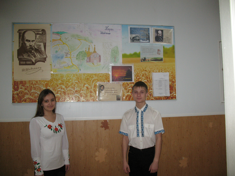 - конкурс учнівських ілюстрацій до творів Т.Г. Шевченка «Гортаючи сторінки Кобзаря» та конкурс стінгазет, буклетів за творчістю генія. (Кращою була обрана робота учня 5-Б класу Гнідого Євгена - портрет Т. Г. Шевченка);
