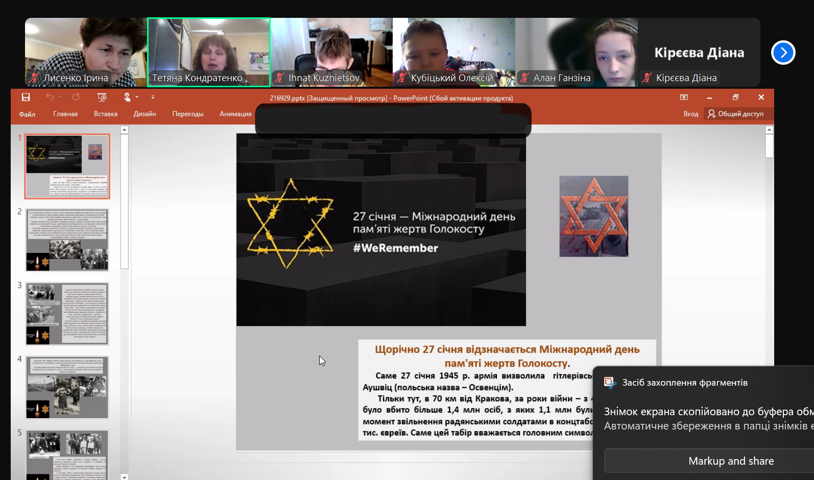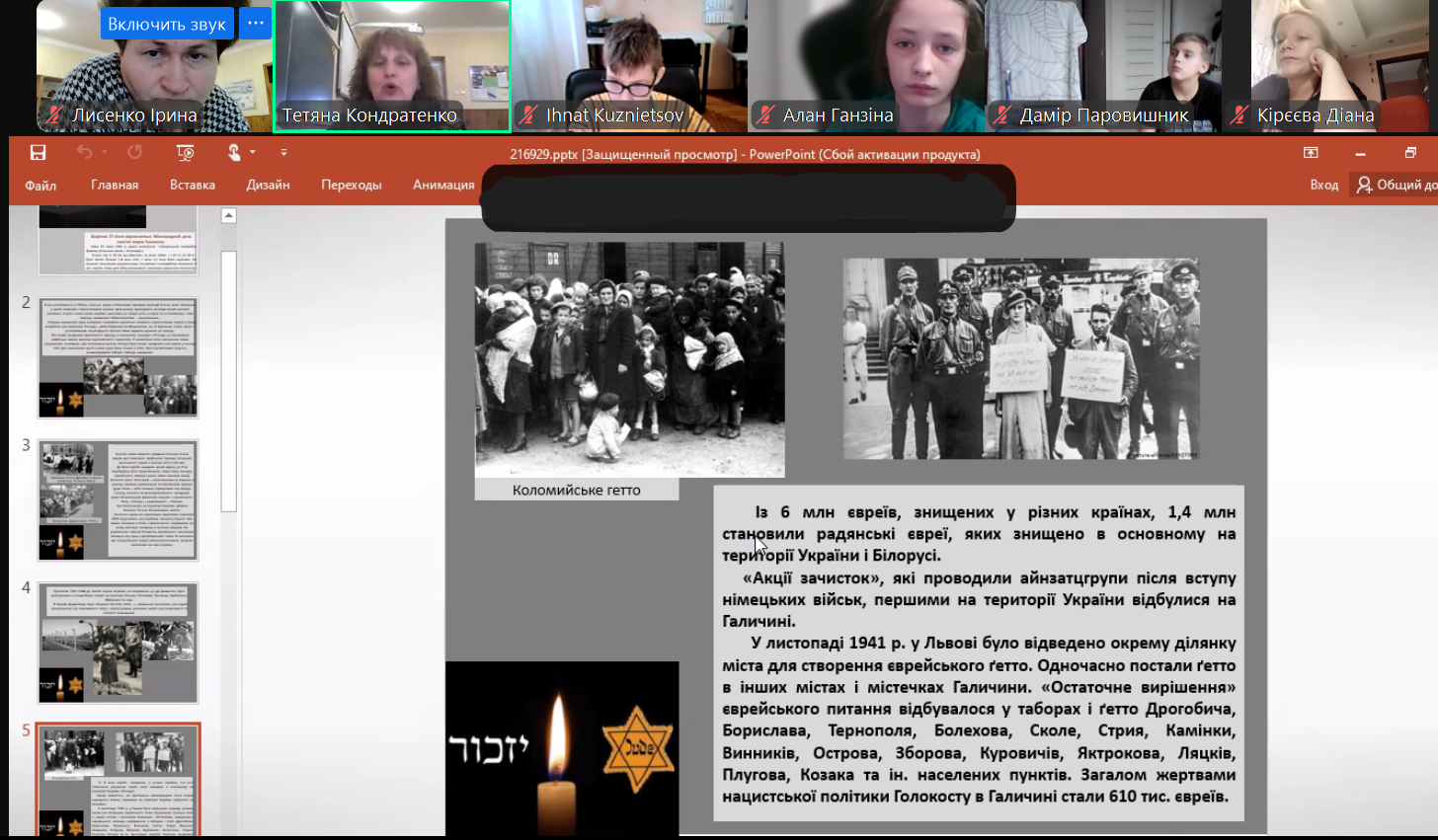 Учні переглянули документальні фільми, ознайомилися зі свідченнями очевидців та жертв Голокосту, а також обговорили важливість збереження пам'яті про ці трагічні події.
