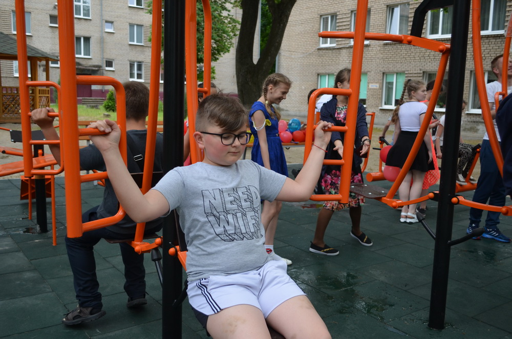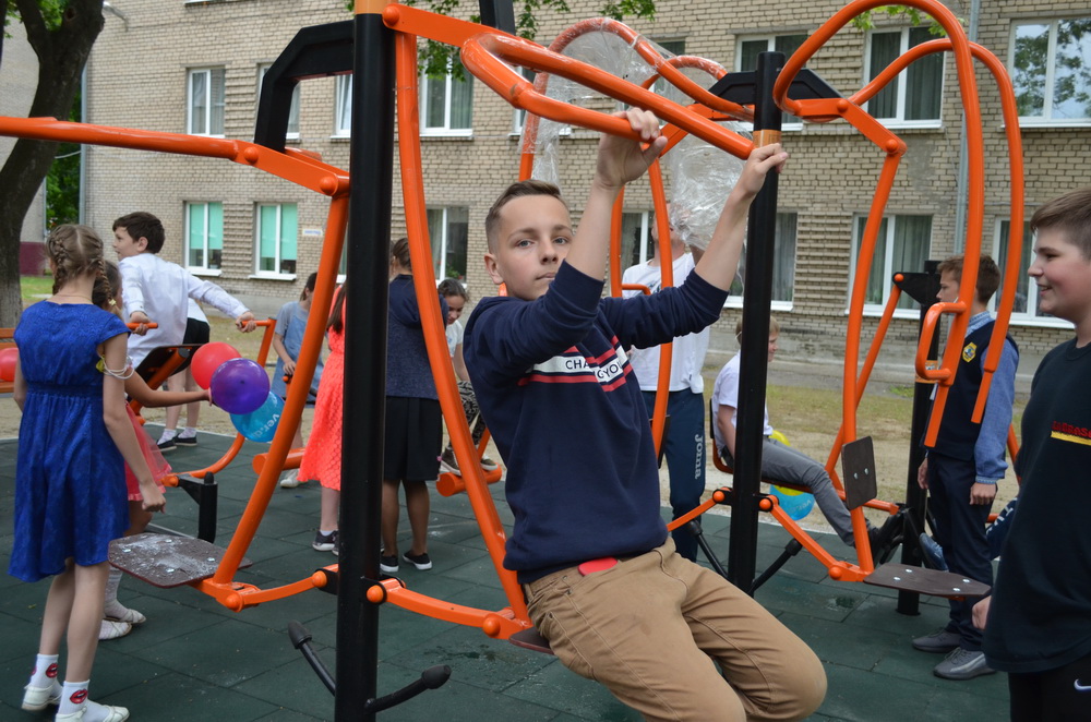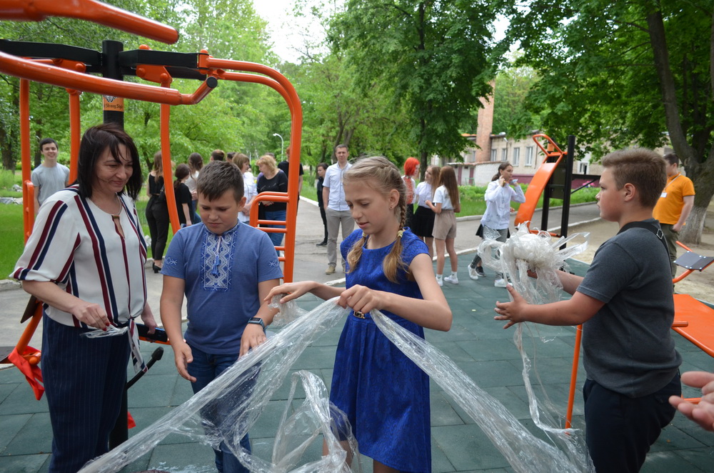 Почесне право урочисто перерізати символічну червону стрічку мала голова дитячо-юнацької організації «КІШ» Вероніка Тонковська – відбулося відкриття спортивного майданчика. Після чого ліцеїсти відразу ж випробували новенькі тренажери.