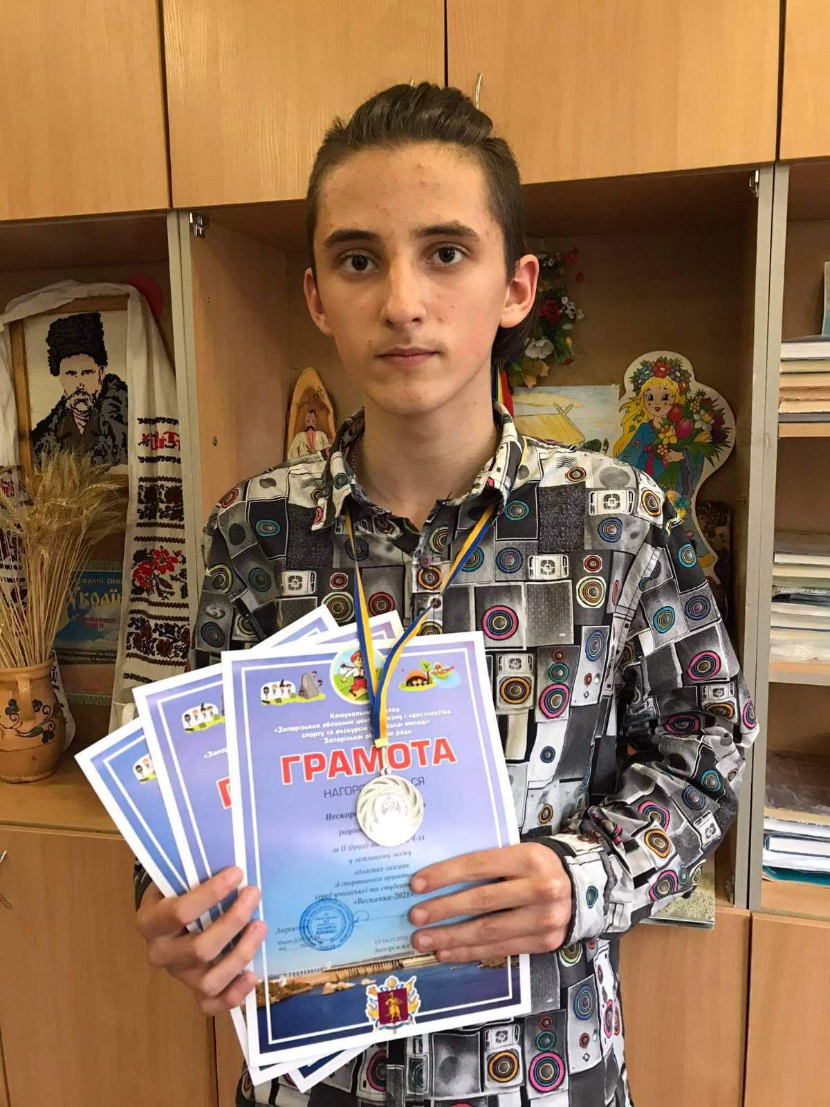 Низку нагород за перемоги в обласних змаганнях зі спортивного орієнтування «Веснянка - 2021» зібрав учень 8-В класу Нескоромний Ростислав: