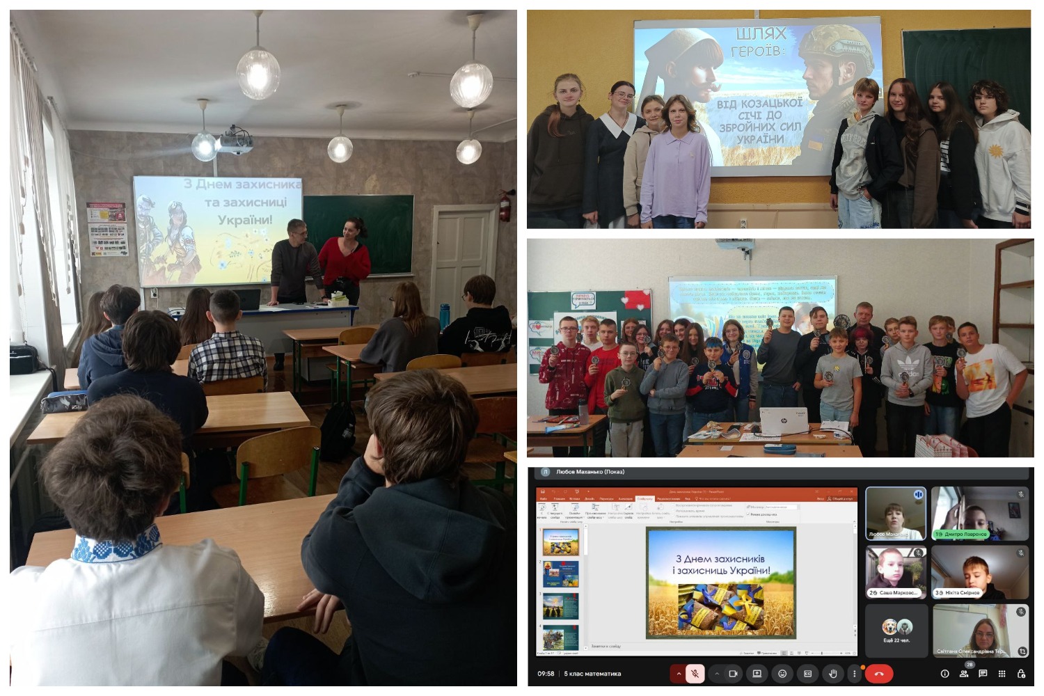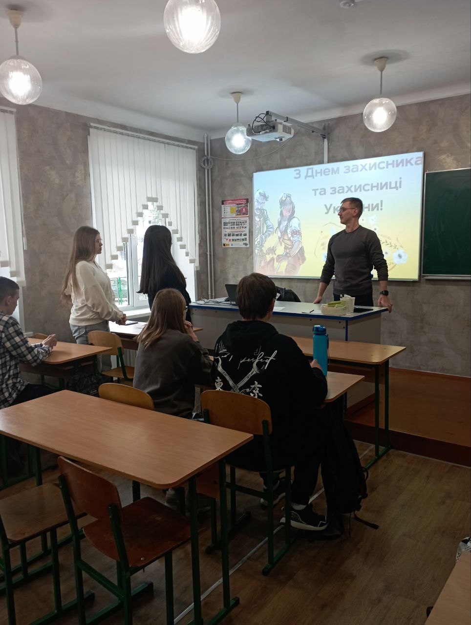 До відзначення Дня захисників і захисниць України, Дня козацтва та свята Покрови у Козацькому ліцеї проведено уроки мужності та звитяги, на які було запрошено ветеранів війни та учасників бойових дій. У ліцеї відбулася благодійна акція «Привітай Героя». Вітальні листівки та обереги, зроблені дитячими руками, передано нашим воїнам, які перебувають на лікуванні у військовому шпиталі. Діти підготували для наших Героїв відеоконцерт.