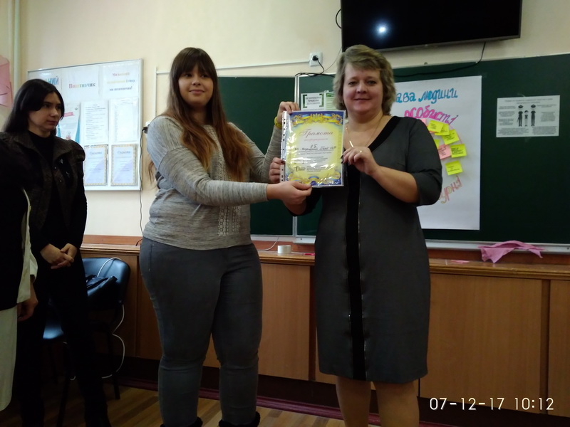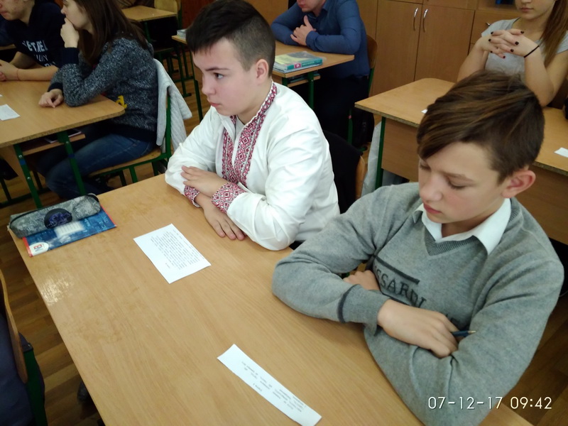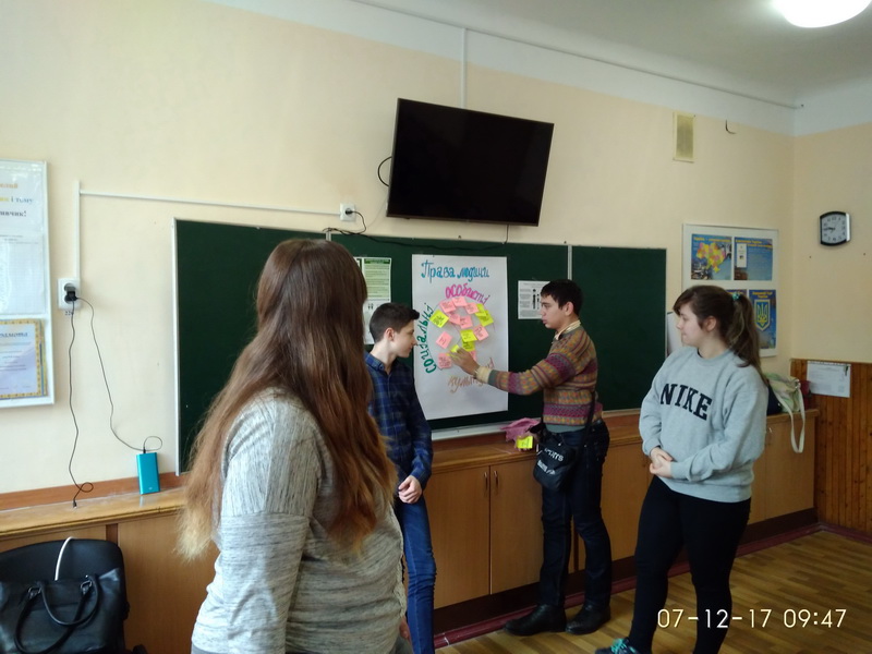 5 грудня 2017 року між учнями 9-Б та 9-В класів відбувся брейн-ринг на тему: « У світі права». Справжній правознавчий інтелектуальний батл влаштувала дев’ятикласникам Ковтун Тетяна Володимирівна.