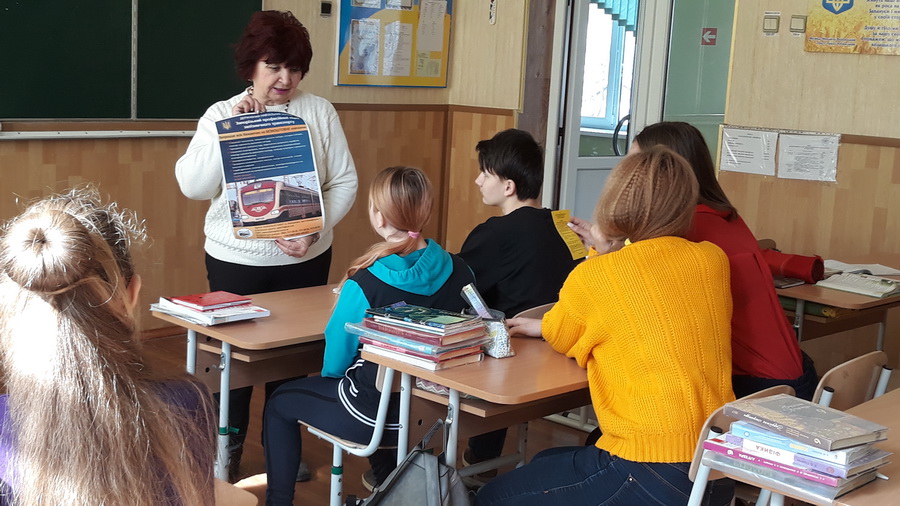 Представниця Запорізького професійного ліцею залізничного транспорту розповіла учням 9-х та 11-х класів про спеціальності, які можна отримати в ліцеї безкоштовно (машиніст тепловоза, дизель-поїзда, електровоза; складач поїздів; слюсар з ремонту рухомого складу; пресувальник колісних пар; помічник машиніста електропоїзда; електрогазозварник; провідник пасажирського вагона; касир квитковий; стюард та ін.).
