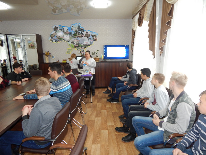 У конференц-залі зібрались учні 9-В і 11-В класів, які отримали можливість прослухати бесіду про такі соціально-небезпечні хвороби, як ВІЛ/СНІД, гепатит С й туберкульоз, а також про способи захисту від них.