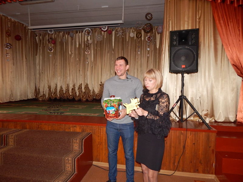Директор ліцею Оксана Олександрівна подякувала супер випускнику за візит, від імені усіх ліцеїстів привітала гостя з прийдешніми новорічно-різдвяними святами, презентувавши солодощі та «золоту» настільну підставку у вигляді символу 2018 року – собаки ручної роботи від вчителя трудового навчання Оношка Андрія Олександровича.
