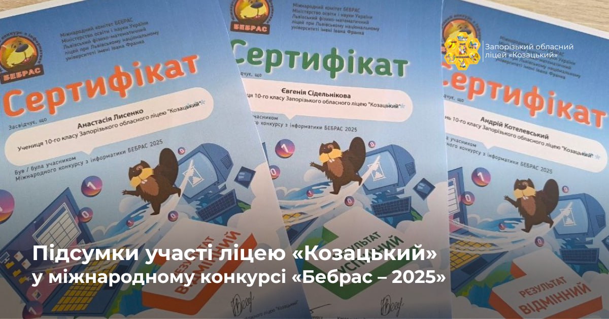 ПІДСУМКИ УЧАСТІ ЛІЦЕЮ «КОЗАЦЬКИЙ» У МІЖНАРОДНОМУ КОНКУРСІ «БЕБРАС – 2025»