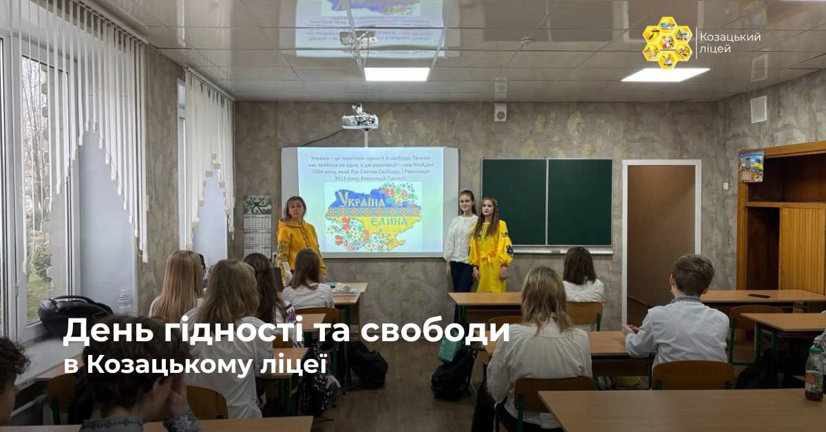 Для учнів підготовлено та розміщено інформаційні стенди, що розповідають про перебіг подій та подвиг молодих захисників України.