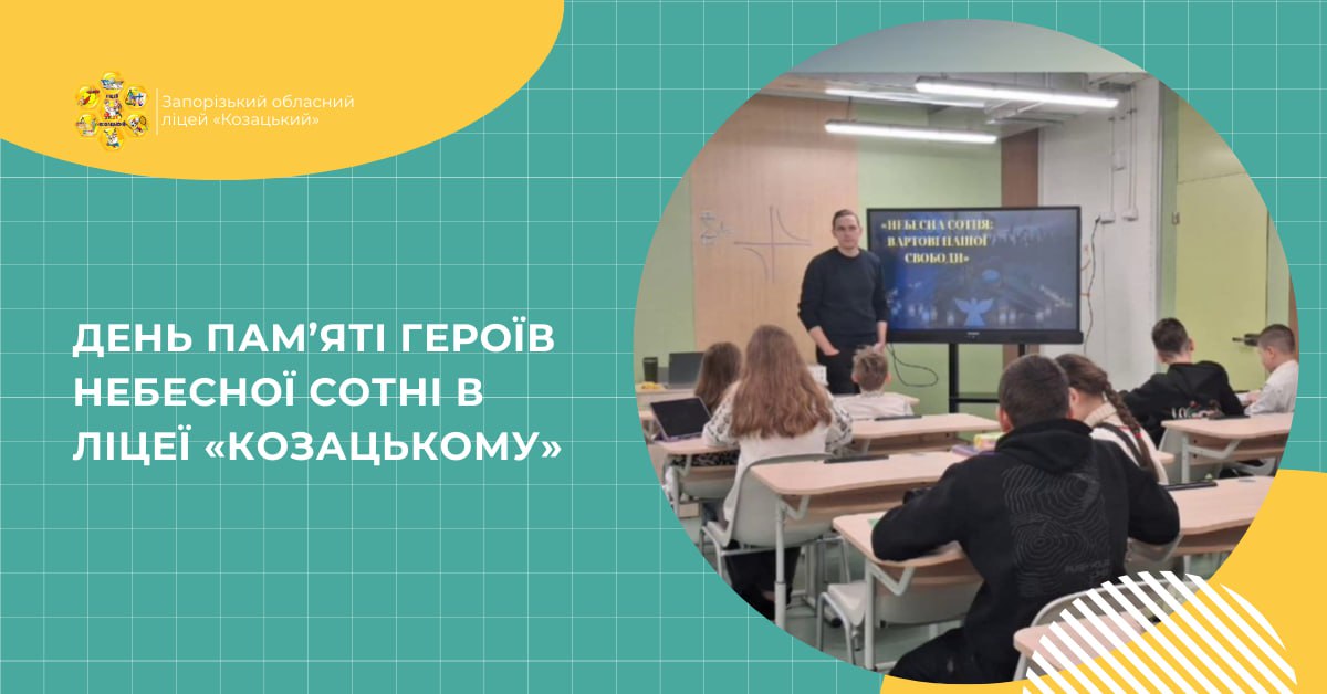 20 лютого в ліцеї «Козацький» вшанували День пам’яті Героїв Небесної Сотні — людей, які віддали своє життя за свободу, гідність і демократичний вибір українського народу під час подій Революції Гідності.