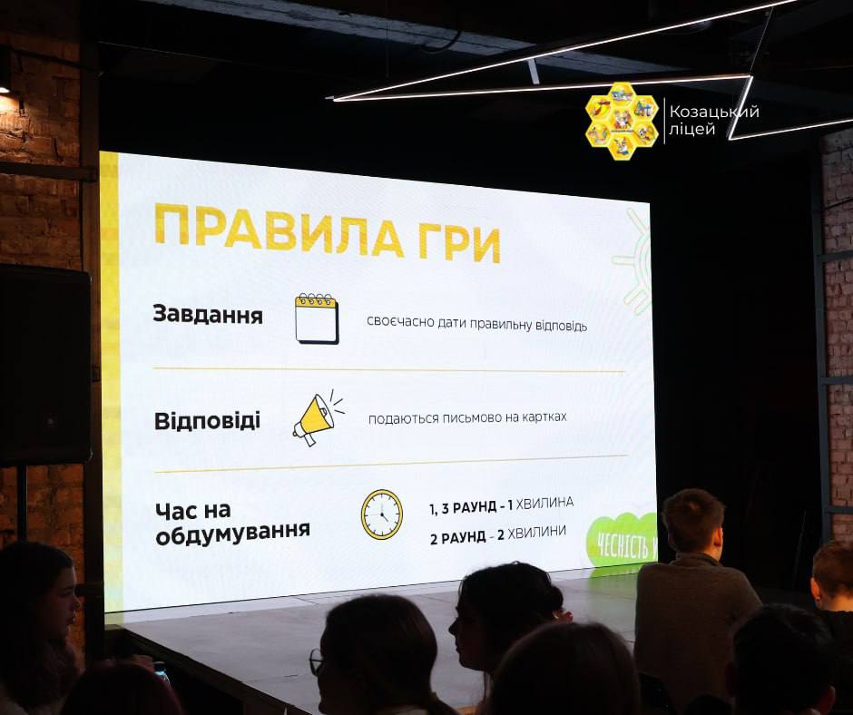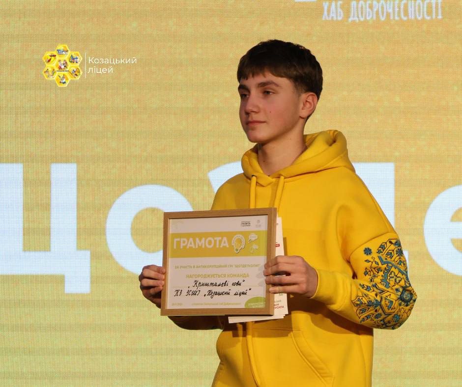 26 листопада команда 9-А класу «Кришталеві сови» Козацького ліцею здобула II місце в антикорупційній грі «Що? Де? Коли?», що відбулася в Незламному Хабі «Орбіта».