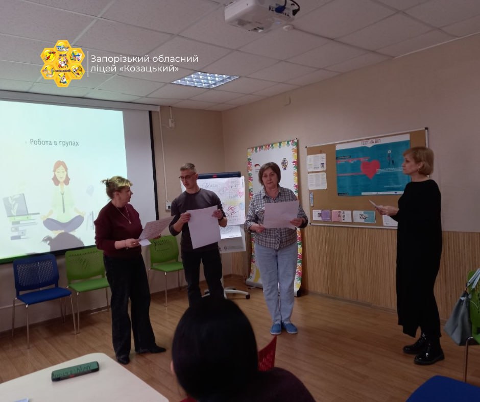 24 березня в комунальному закладі «Запорізький обласний академічний ліцей «Козацький» Запорізької обласної ради психологинею Пугач Лілією Василівною проведено семінар-тренінг для педагогів на тему «Вигорання педагогів під час війни».