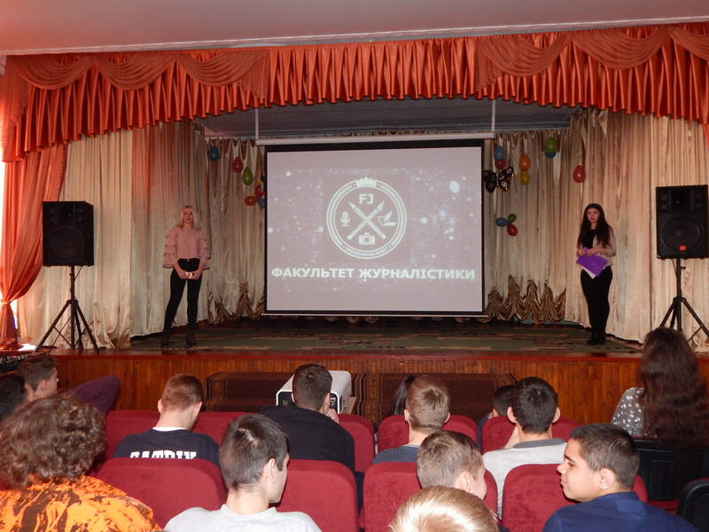 Сподобалась юнацтву профорієнтаційна зустріч із студентками Запорізького національного університету, які розказували та під супровід слайдів презентації і тематичних відеосюжетів демонстрували переваги навчання саме на факультеті журналістики.