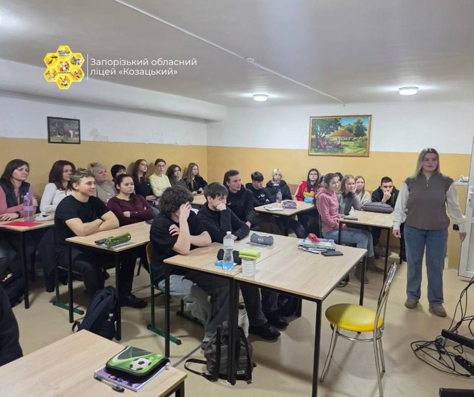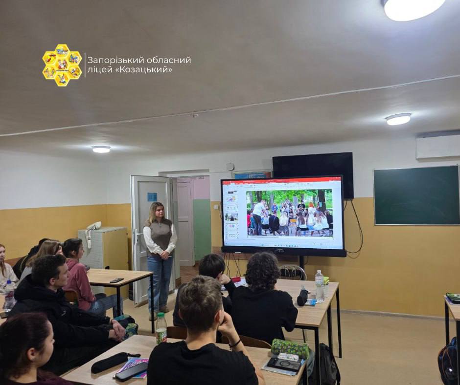 Для учнів 11-х класів комунального закладу «Запорізький обласний академічний ліцей «Козацький» Запорізької обласної ради відбулася профорієнтаційна зустріч із випускницею ліцею Мєчєвою Софією, студенткою Національного університету «Острозька академія», яка навчається в Навчально-науковому інституті лінгвістики.