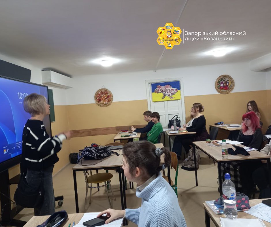 3 березня до учнів 11-х класів ліцею «Козацький» завітала професорка кафедри німецької філології, перекладу та світової літератури Запорізького національного університету Олександра Ніколова. Вона провела профорієнтаційну зустріч для майбутніх випускників, які навчаються офлайн у безпечних умовах.