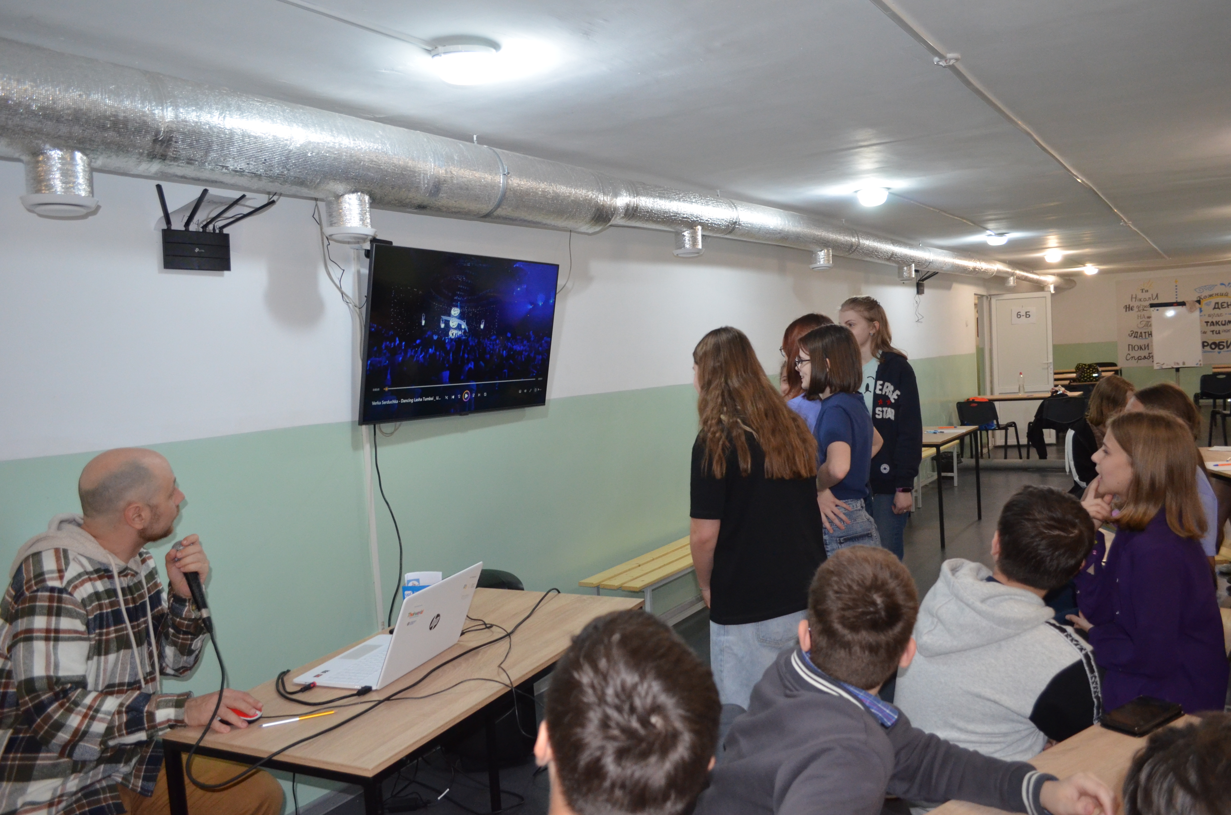 18 квітня 2024 року в укритті Запорізького Козацького ліцею зібралися меломани 6-х класів на музичний брейншторм, який провів для здобувачів освіти Юрій Вдовцов.